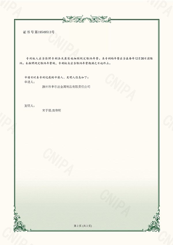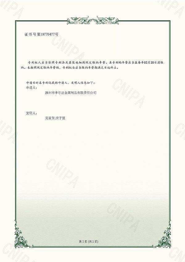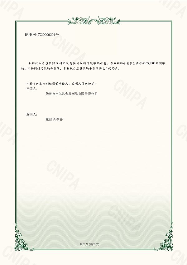 Cam kết của công ty về chất lượng và sự tuân thủ được thể hiện rõ qua việc sở hữu một bộ chứng nhận toàn diện, bao gồm GB/T 24001-2016/ISO 14001:2015 về quản lý môi trường, GJB 9001C-2017, GB/T45001-2020/ISO 45001:2018 về sức khỏe và an toàn nghề nghiệp, và GB/T 19001-2016/ISO 9001:2015 về quản lý chất lượng. Danh mục chứng nhận rộng rãi này đảm bảo rằng Tengzhou Fengerda tuân thủ các tiêu chuẩn quốc tế cao nhất trong mọi khía cạnh hoạt động của mình.