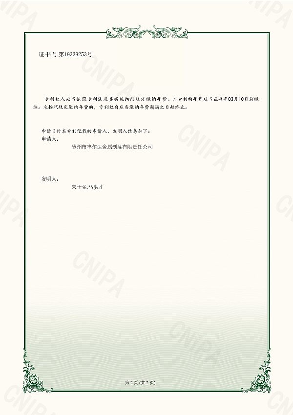 Cam kết của công ty đối với chất lượng và sự tuân thủ được thể hiện rõ qua việc sở hữu một bộ chứng nhận toàn diện, bao gồm GB/T 24001-2016/ISO 14001:2015 về quản lý môi trường, GJB 9001C-2017, GB/T45001-2020/ISO 45001:2018 về sức khỏe và an toàn nghề nghiệp, và GB/T 19001-2016/ISO 9001:2015 về quản lý chất lượng. Danh mục chứng nhận rộng rãi này đảm bảo rằng Tengzhou Feng Erda tuân thủ các tiêu chuẩn quốc tế cao nhất trong mọi khía cạnh hoạt động của mình.